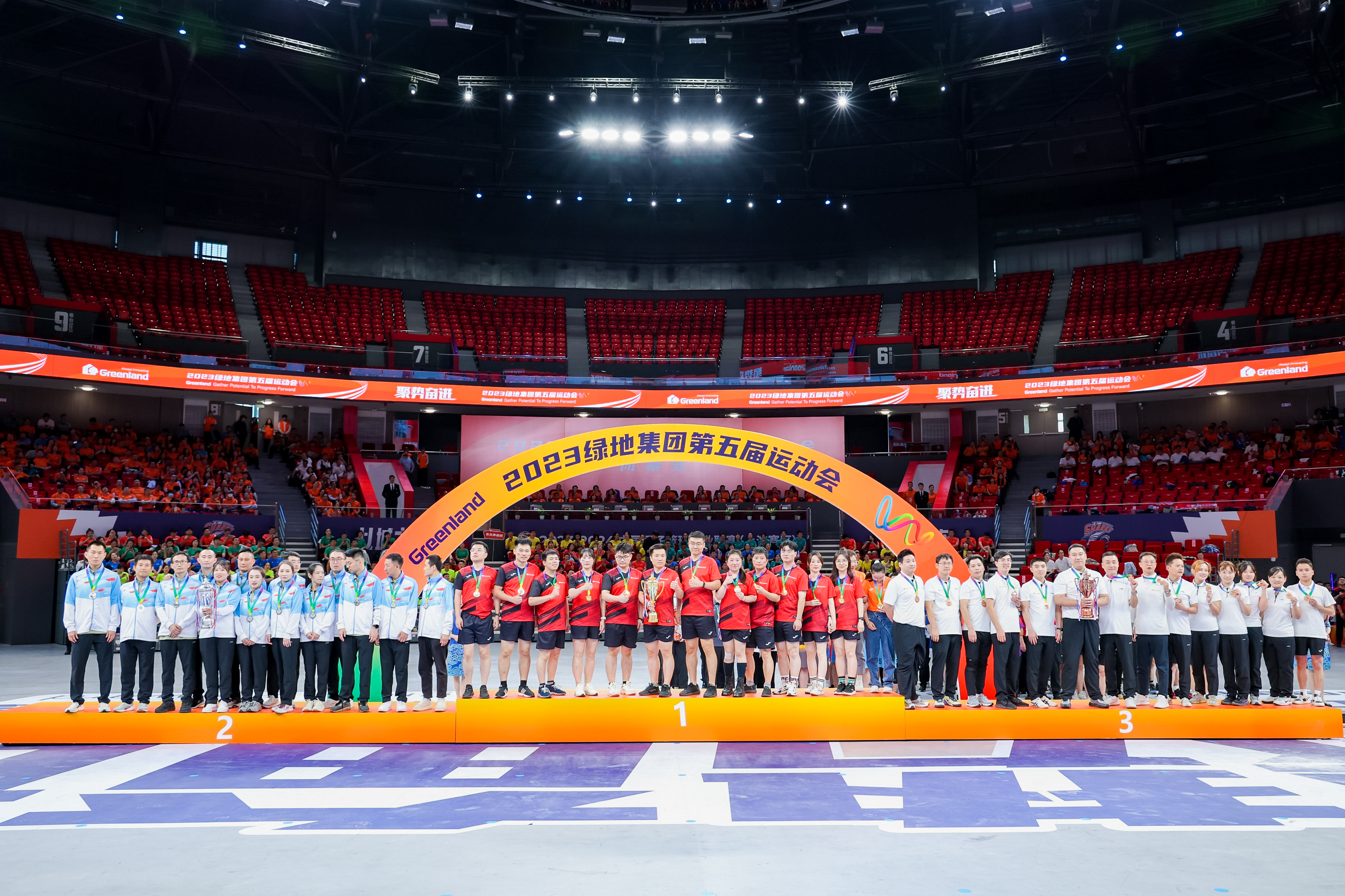 10月23日,以“聚勢奮進”為主題的綠地集團第五屆運動會在上海體育館勝利閉幕。綠地集團董事長、總裁張玉良出席閉幕式并為獲獎團隊和運動員頒發獎杯。